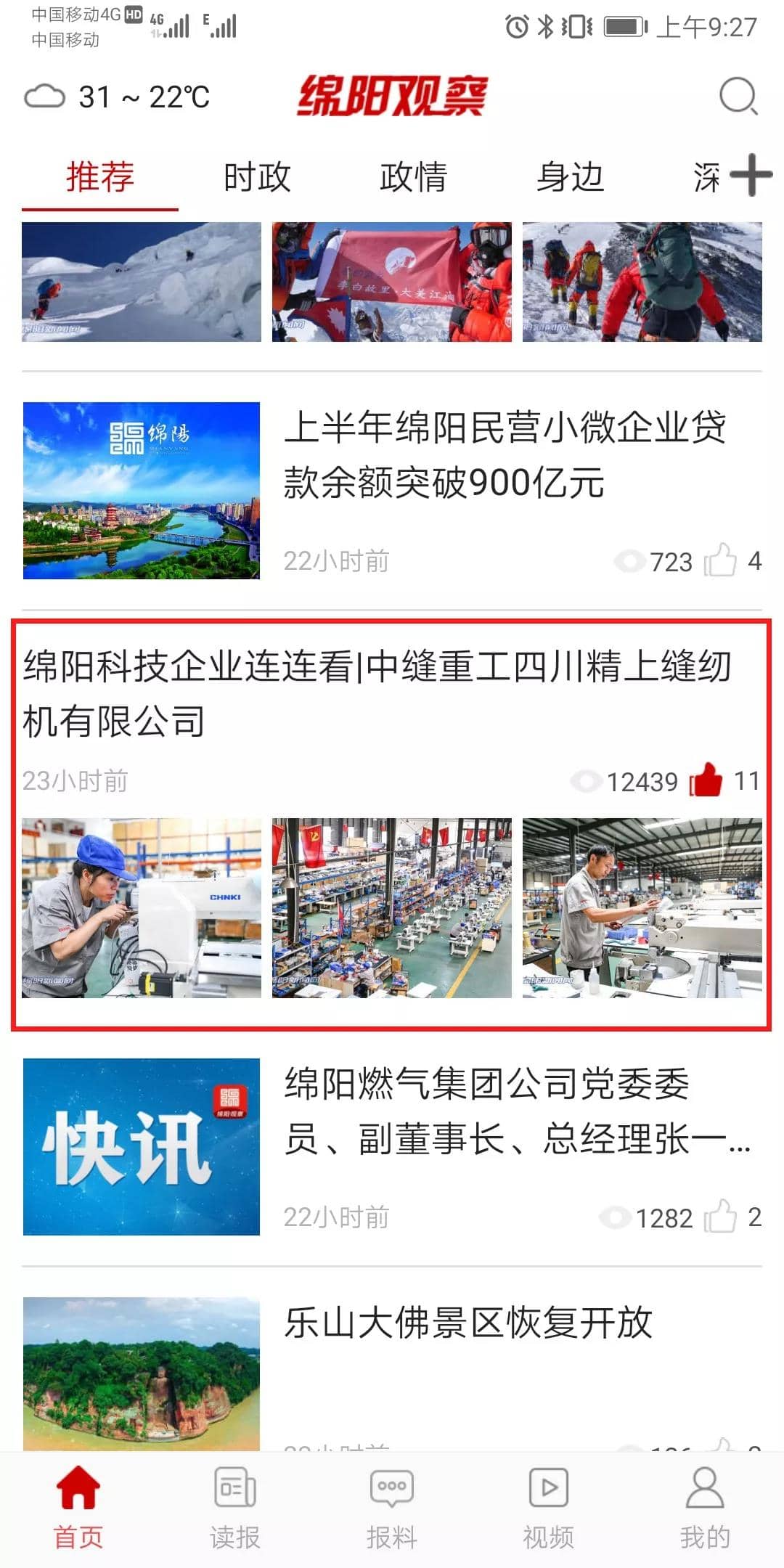 給力!中縫重工再登《綿陽日報》頭版